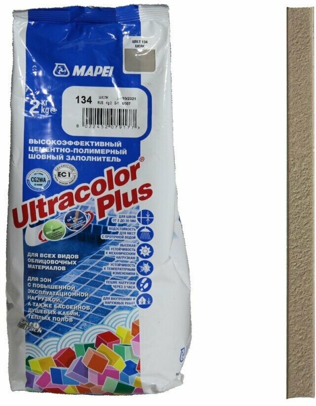 Затирка для плитки Mapei Ultracolor Plus №134 шелк 2 кг
