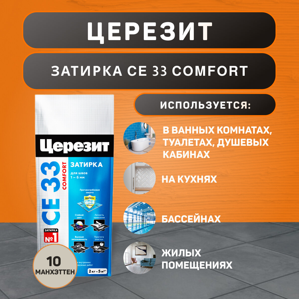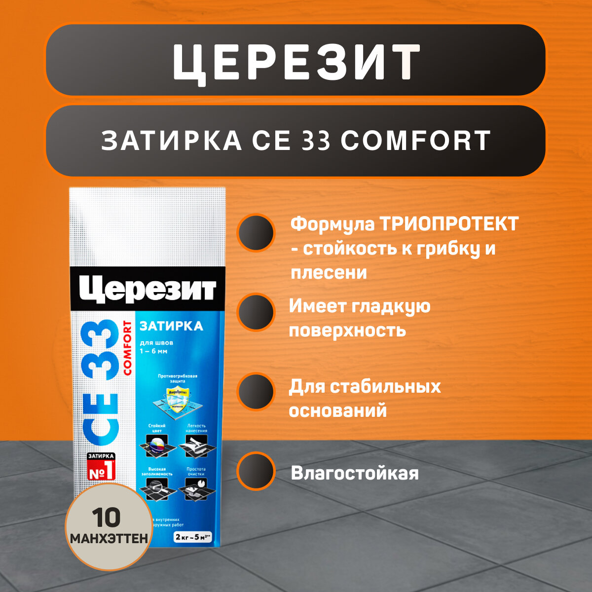 Затирка Ceresit CE 33 Comfort №10, манхеттен, 2 кг