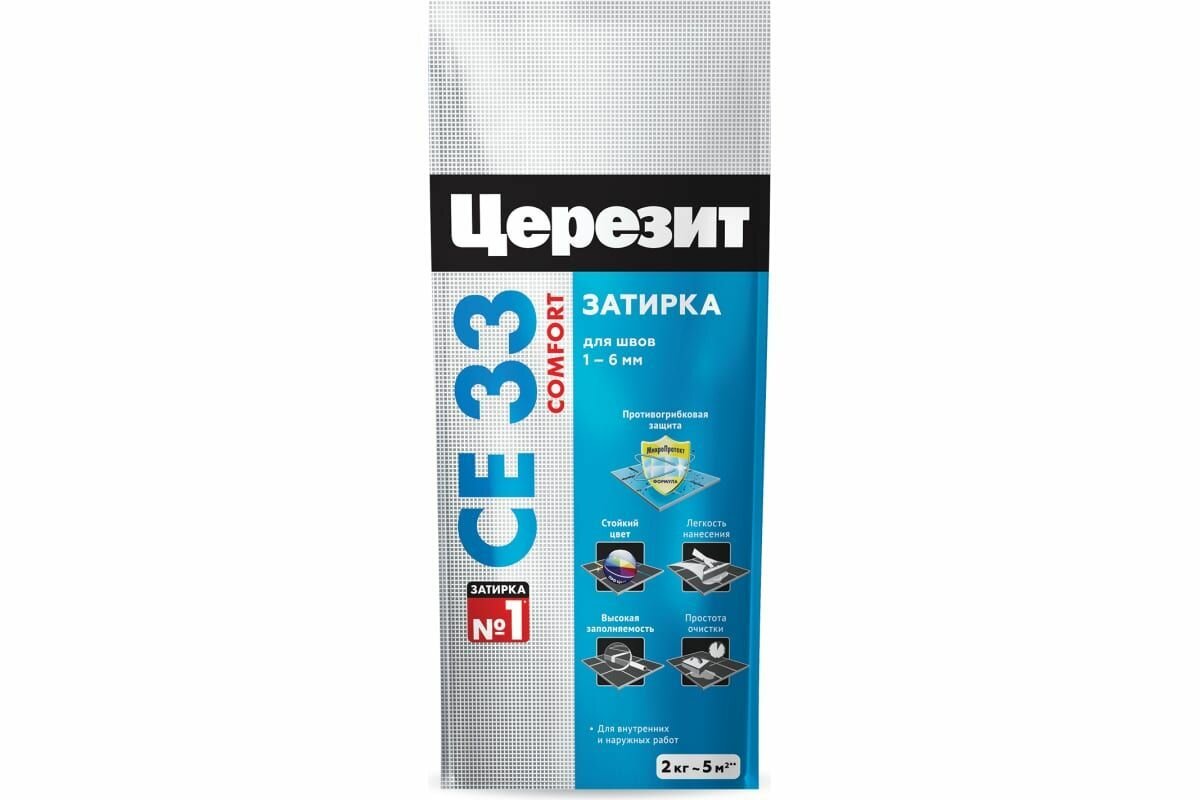 Церезит СЕ 33 затирка противогрибковая №41 натура (2кг) / CERESIT CE-33 Comfort затирка цементная для швов противогрибковая №41 натура (2кг)