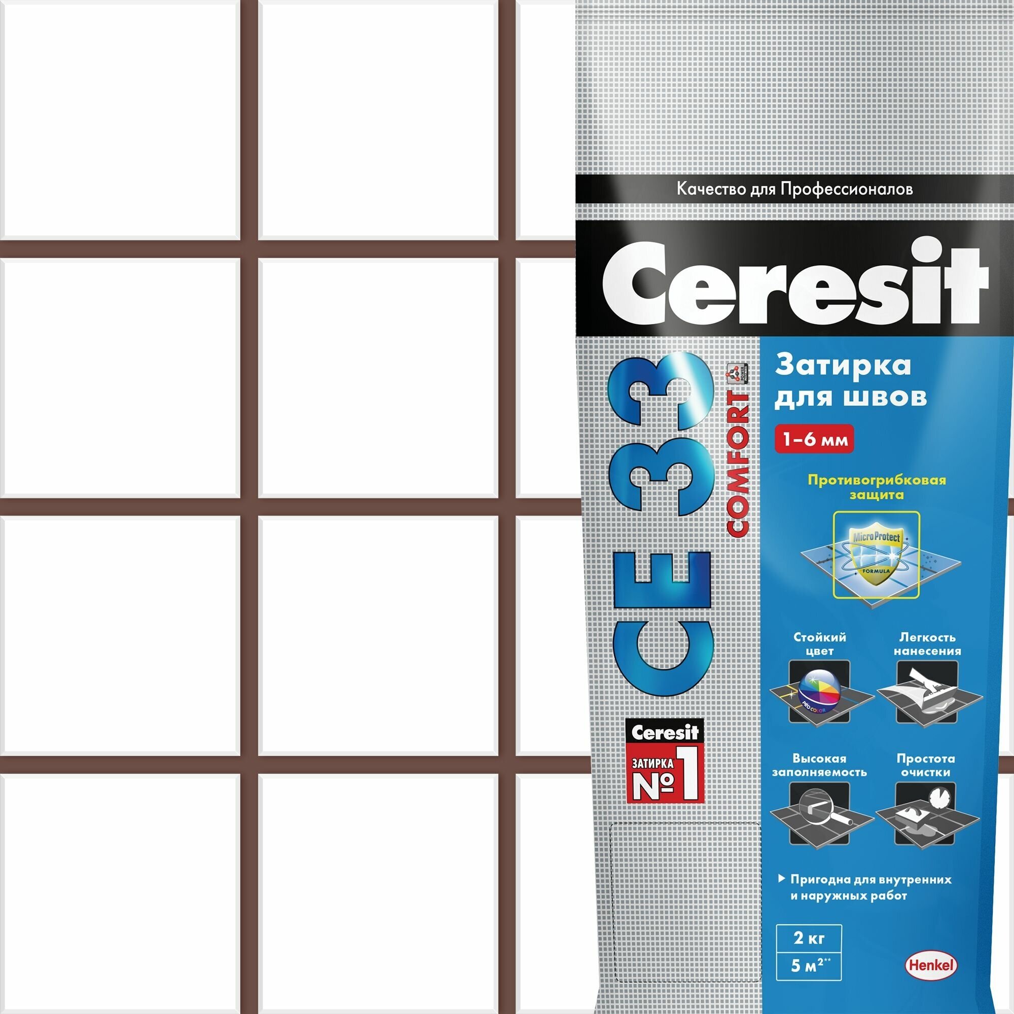 Затирка CERESIT СЕ 33 COMFORT № 01, белая, 2 кг