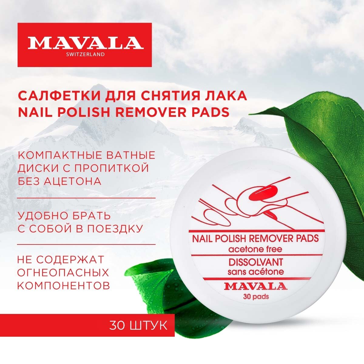 Mavala Салфетки для снятия лака Nail Polish Remover Pads, 30 шт