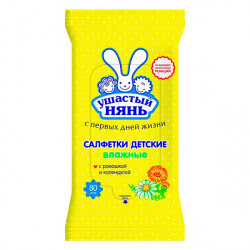 Купить Детские влажные салфетки с ромашкой и календулой Ушастый нянь 80 шт/упак.