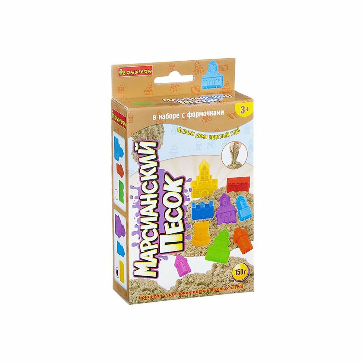 Набор игровой Вondibon "Марсианский песок", 150г бежевый , 3 формочки (замок), 3 вида