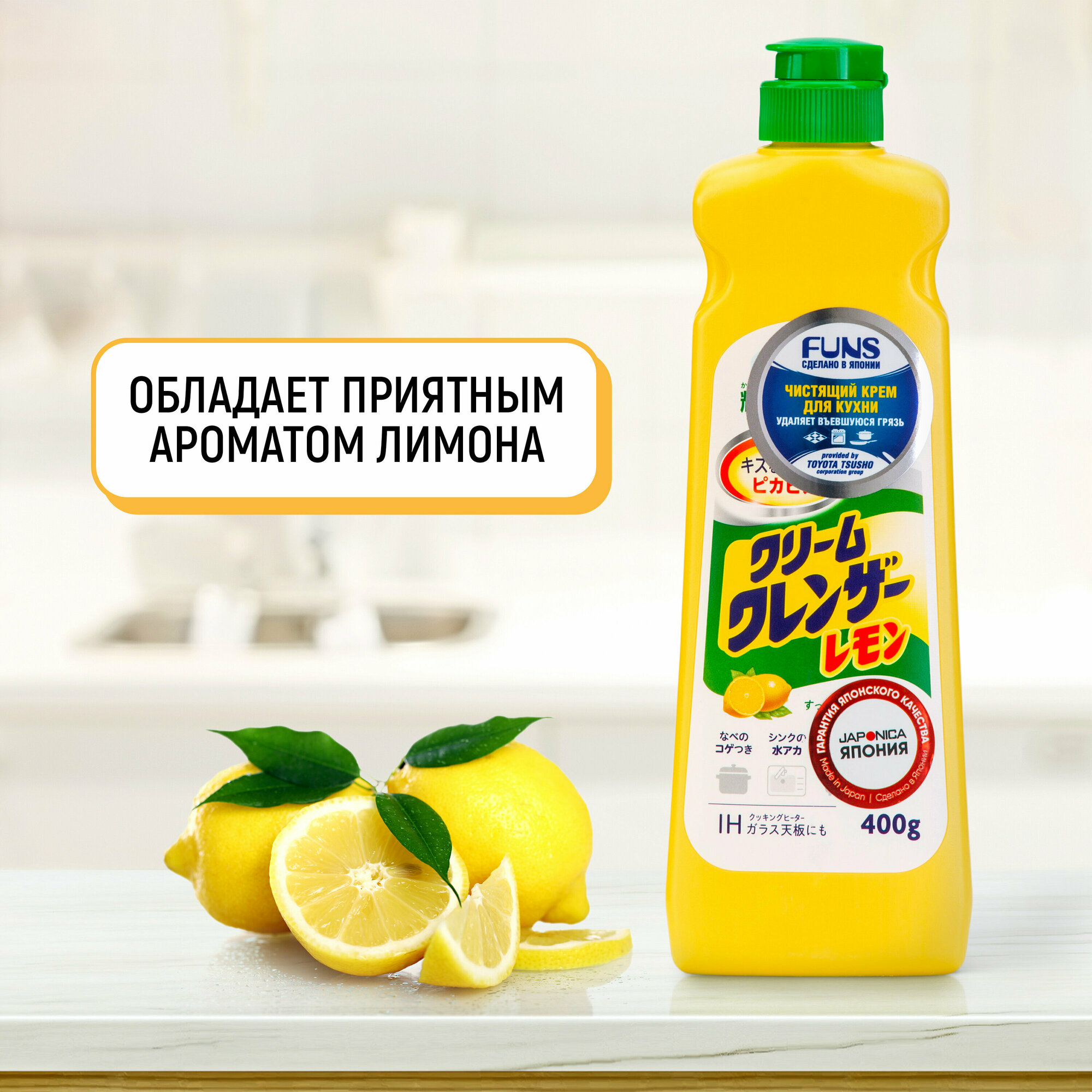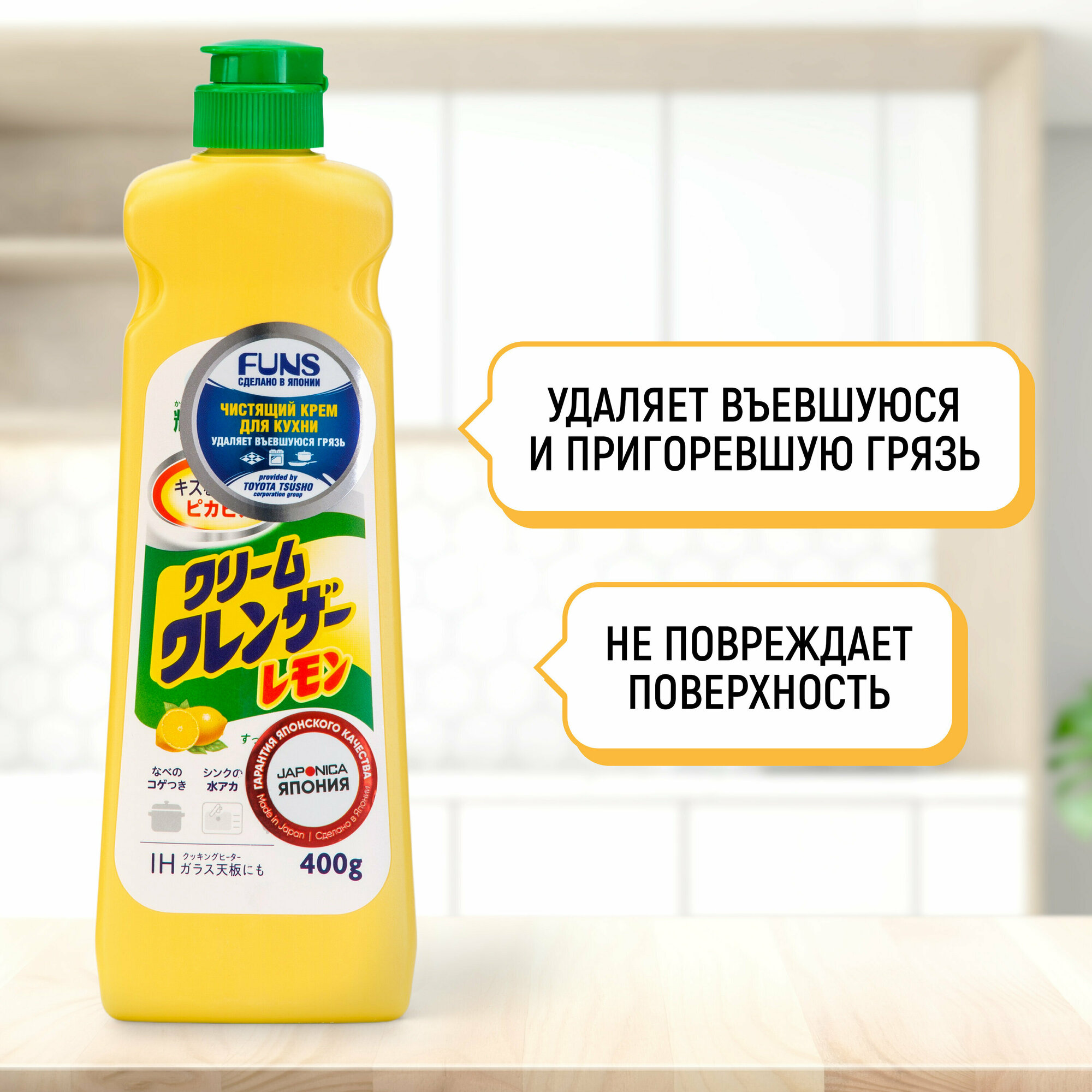 FUNS Крем чистящий для кухни и посуды с ароматом лимона (Япония) - 400 мл