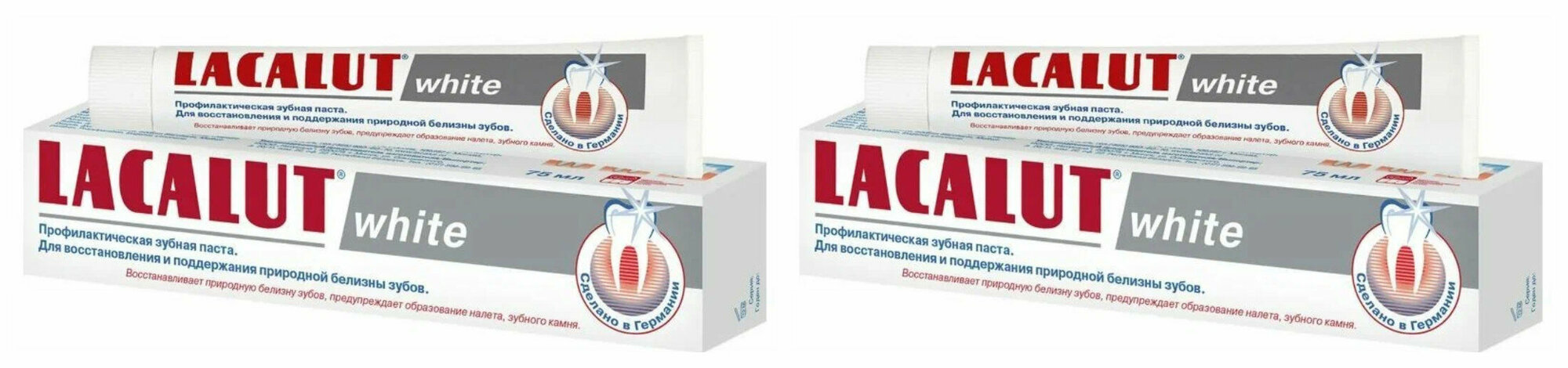 Зубная паста Lacalut White 75 мл, спайка из 2 штук