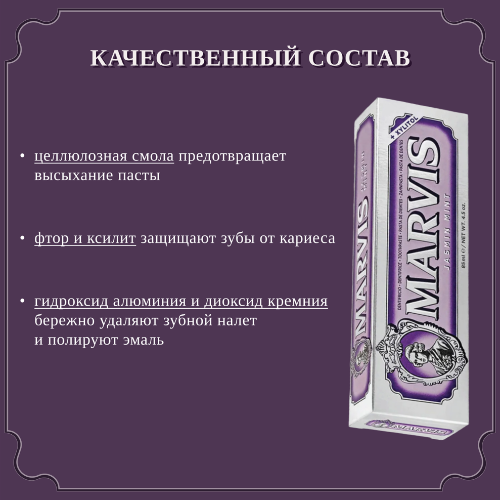 СохранитьЗубная паста Marvis Jasmin Mint, 85 мл, 147 г, фиолетовый интересное: