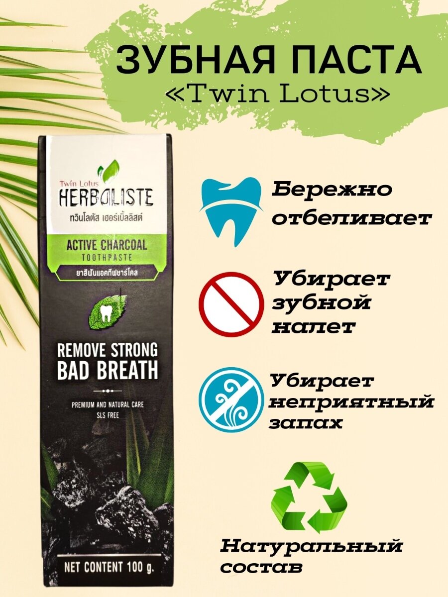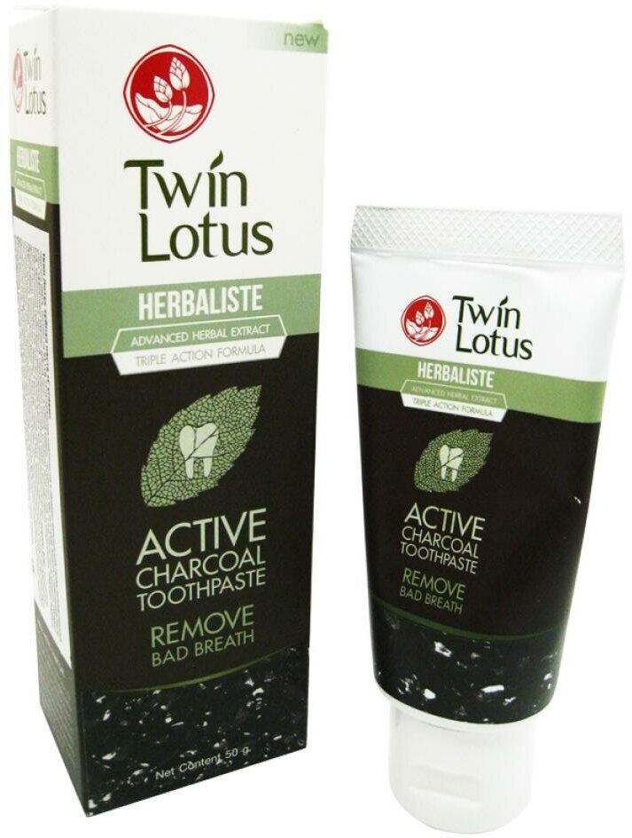 ACTIVE CHARCOAL Toothpaste, Remove Bad Breath, Twin Lotus (Зубная паста С углём, Удаление неприятного запаха изо рта, Твин Лотус), 50 г.