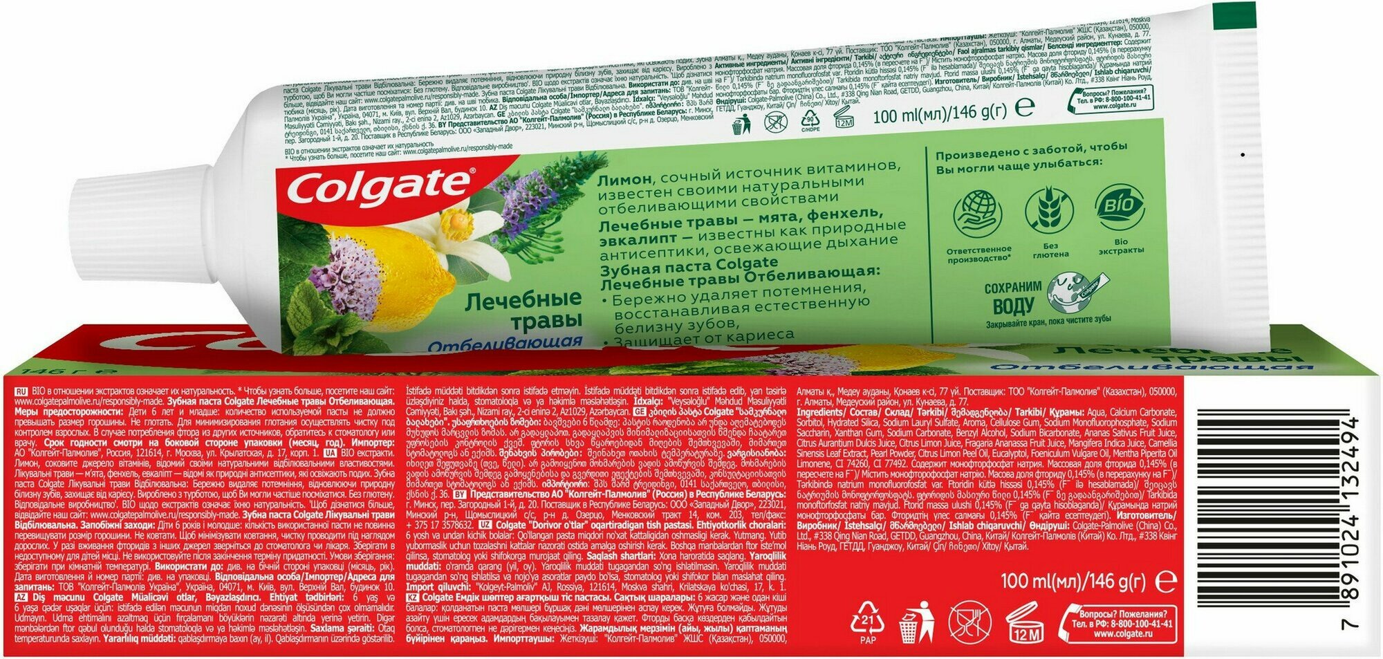 Зубная паста Colgate Лечебные травы Отбеливающая , 100 мл