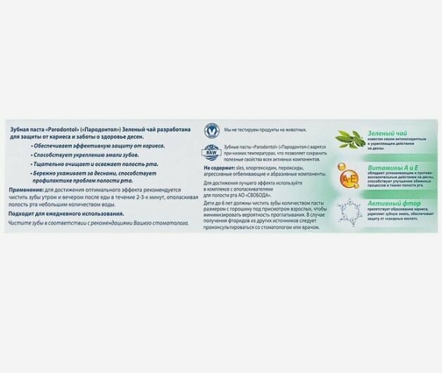Купить Зубная паста Свобода пародонтол Экстракт зеленого чая, 124 г