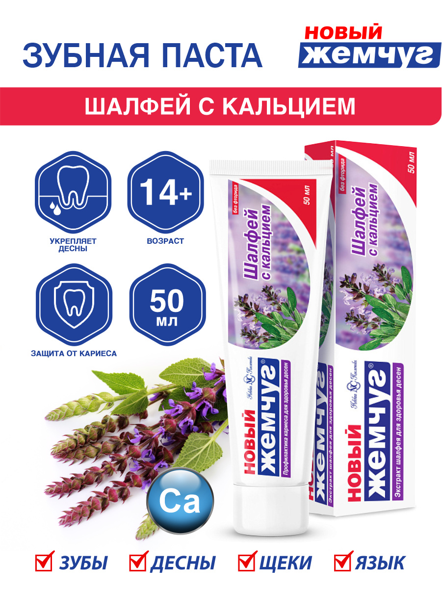 Зубная паста Новый Жемчуг Шалфей с кальцием, 50 мл