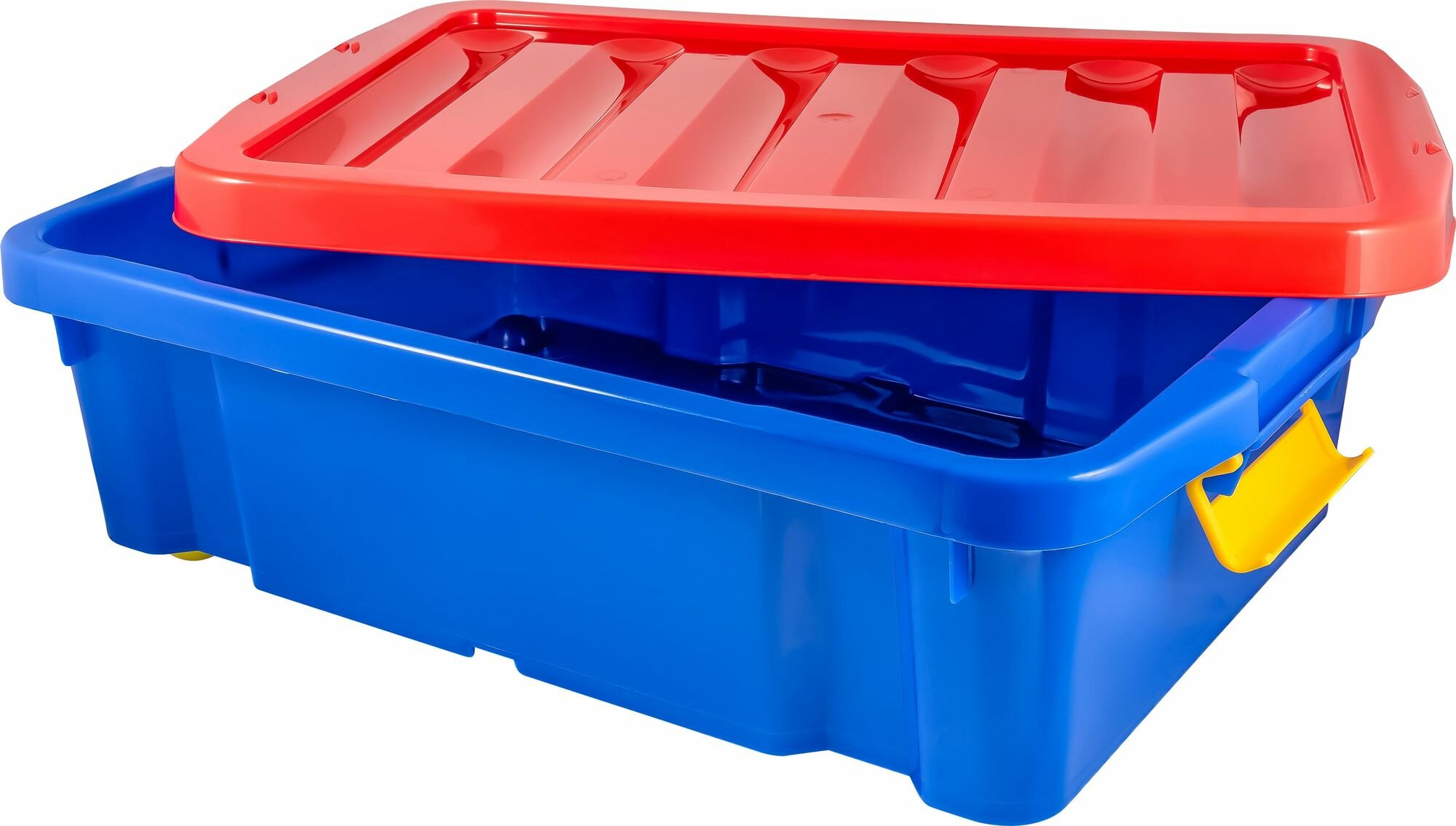 Ящик Plast Team JUMBO на роликах ребристая крышка 30л синий интересное: