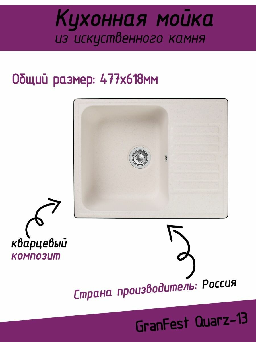 Кухонная мойка GRANFEST Quarz GF-Z13, кварц, 47.7см х 61.8см, бежевый [gf-z13-328]
