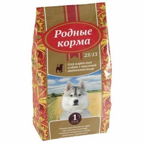 Родные корма 25/13 1 пуд 16,38 кг сухой корм для взрослых собак с высокой активностью