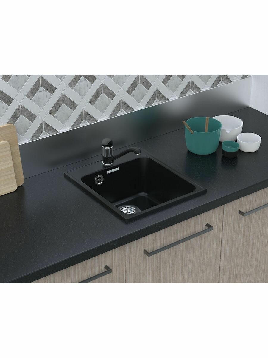 Мойка кухонная врезная, GranFest, Quarz Eco, кварцевый песок, 418х477 мм, без сифона, черная, GF-Z17