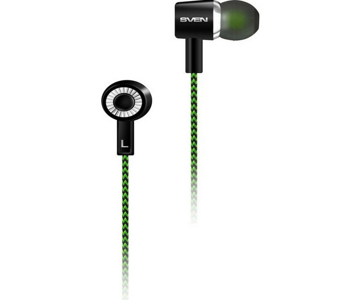 SVEN Внутриканальные стереонаушники E-107, черный-зелёный