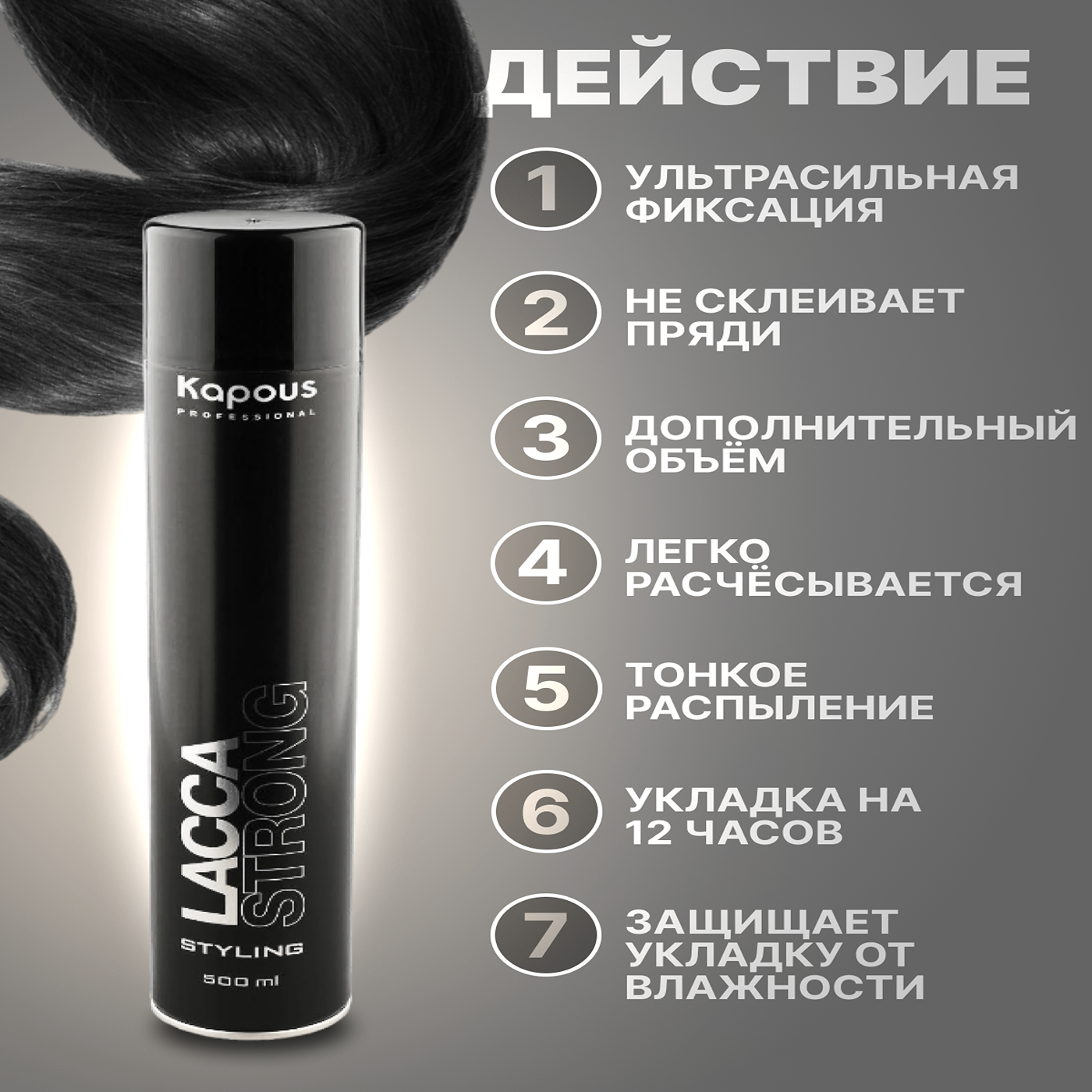 Лак для волос KAPOUS PROFESSIONAL Lacca Strong, сильной фиксации, 100 мл