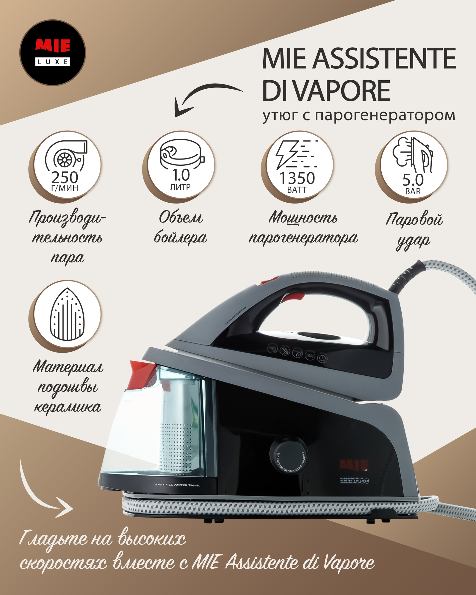Парогенератор Mie Assistente di Vapore серый интересное:
