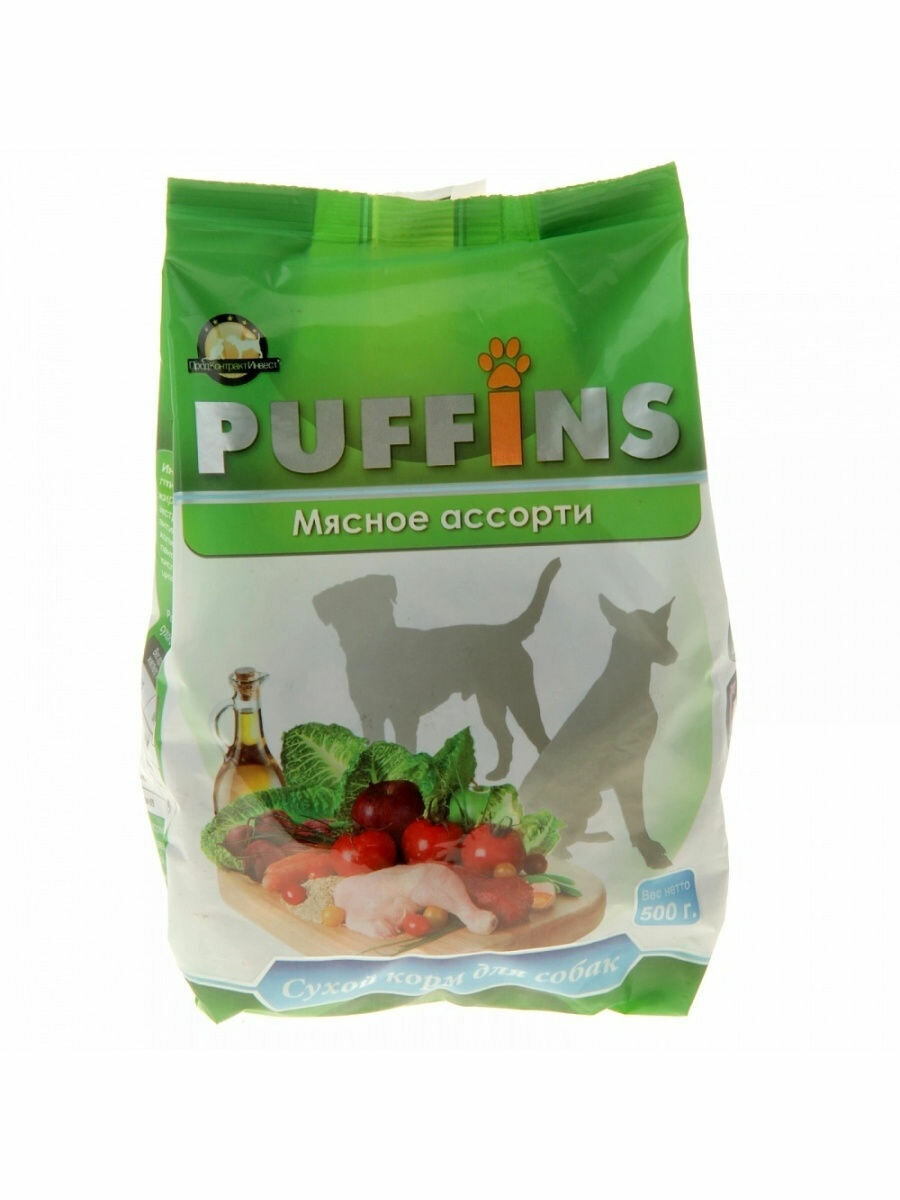 Puffins Сухой корм для собак Мясное ассорти, 500г 0.5 кг