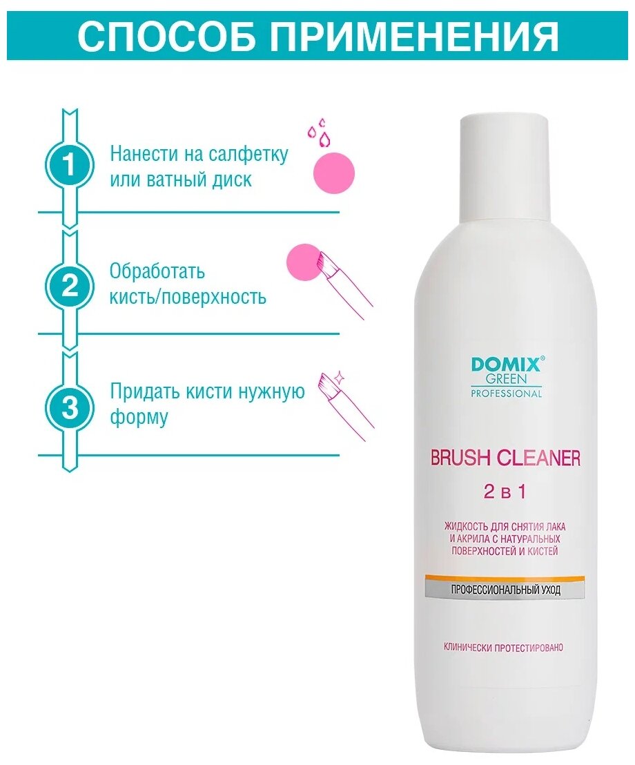 Купить Domix Жидкость для снятия лака и акрила с натуральных поверхностей и кистей Brush Cleaner 2в1, 500 мл