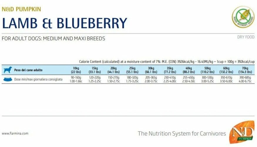 FARMINA DOG N&D GRAIN FREE PUMPKIN ADULT MEDIUM & MAXI LAMB & BLUEBERRY беззерновой для взрослых собак средних и крупных пород с ягненком, черникой и тыквой (12 кг)