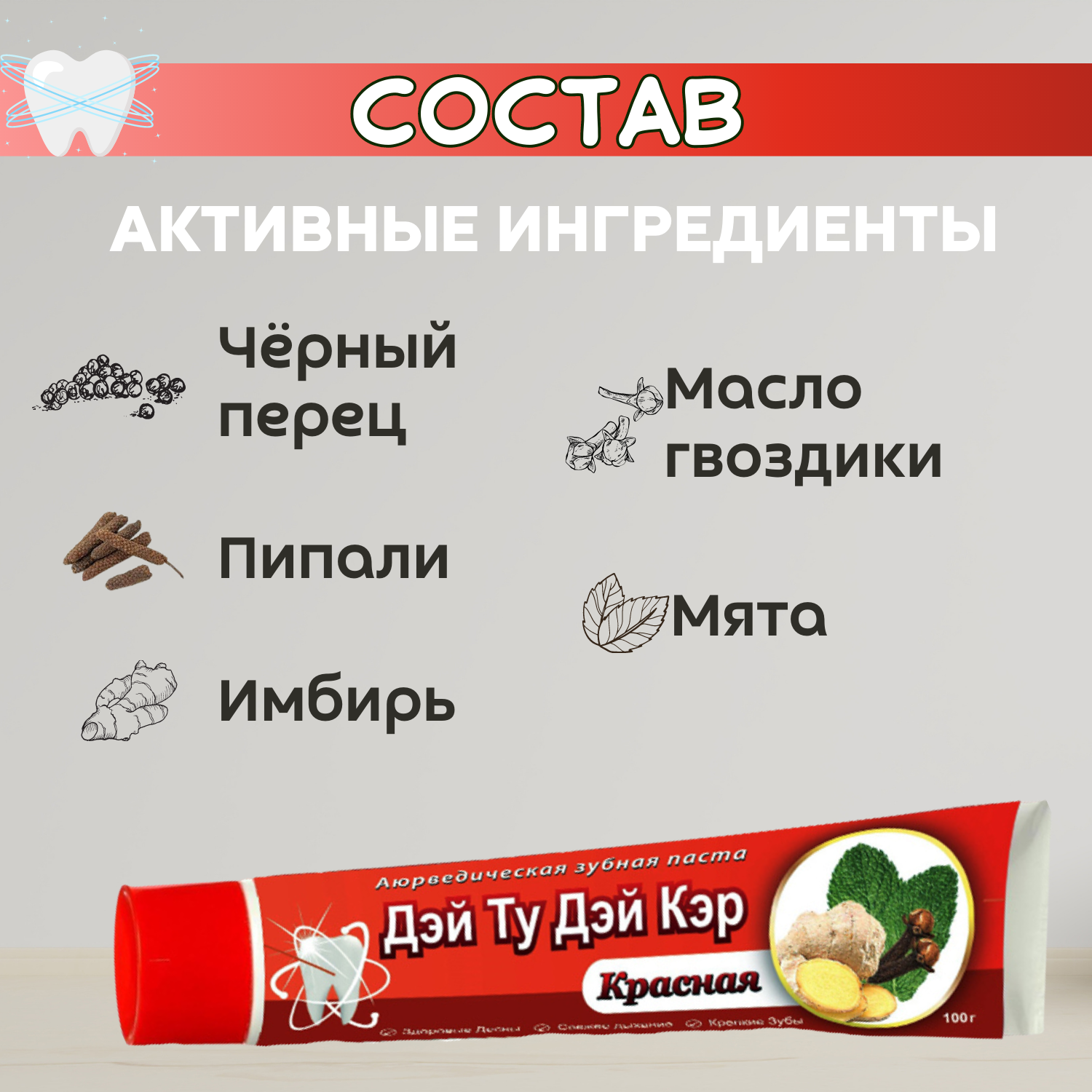 Зубная паста Day 2 Day Care Красная аюрведическая, 100 мл, 100 г