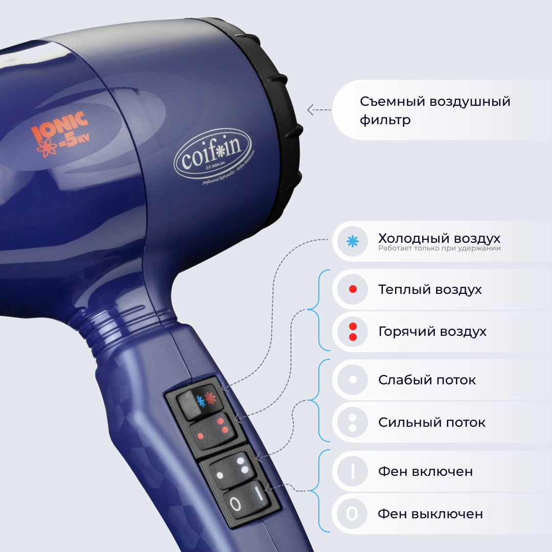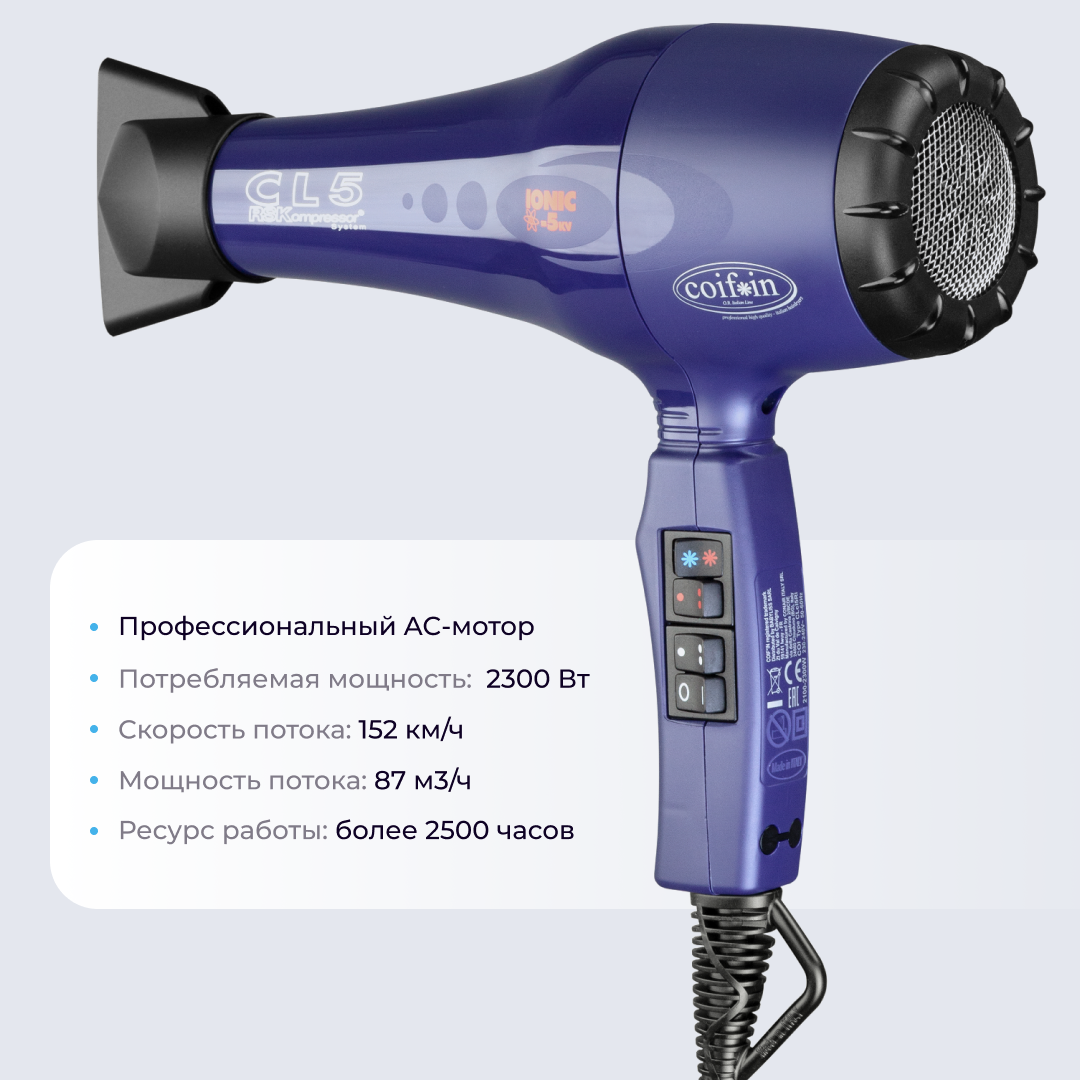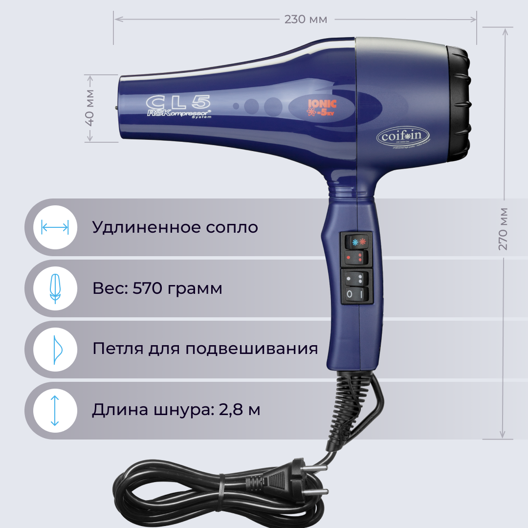 Фен для волос профессиональный COIFIN Classic CL5R Ionic 03113-04 серия CL5, модель COICL5ER351, тип CLcl5Ri 230V 2300W синий