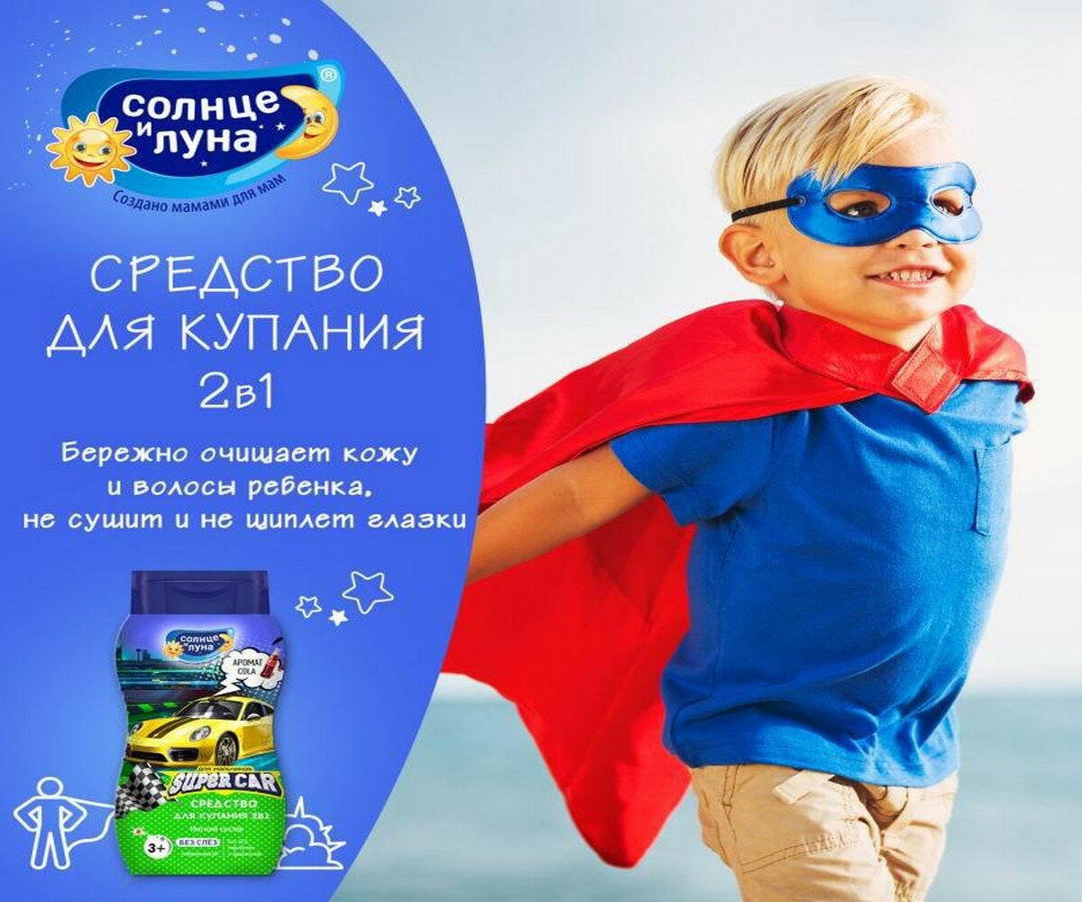 Шампунь солнце И луна яркие моменты SUPERCAR детский для мальчиков 200мл