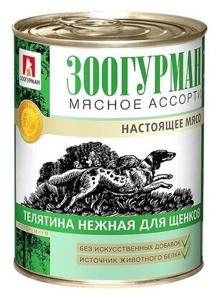 Зоогурман консервированный корм для щенков Мясное ассорти Телятина нежная ж/б 350г 20шт