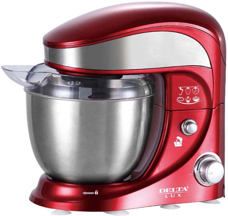 Миксер планетарный DELTA LUX DL-5070Р красный: 1000 Вт,чаша из нерж.стали-4л