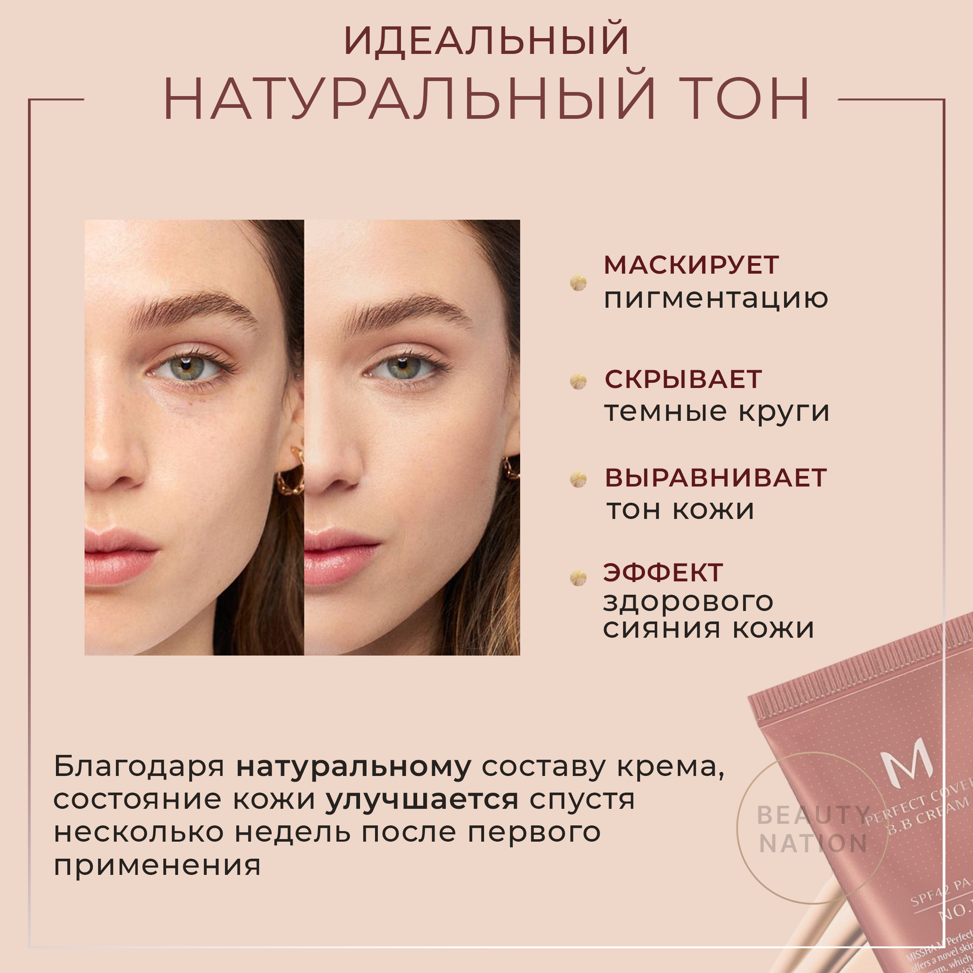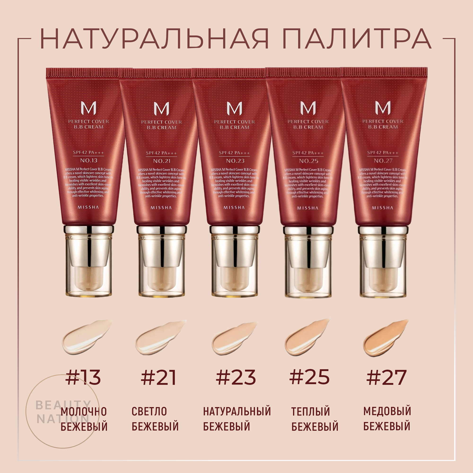 BB крем для лица Missha M Perfect Cover B.B Cream SPF42 PA+++, №23, 50 мл Корея миша тональный увлажняющий ББ стойкий вв основа биби