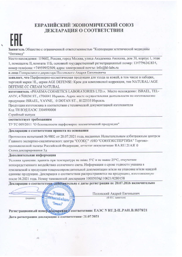 Купить AGE DEFENSE Holy Land AGE DEFENSE CC Cream Natural (SPF50)| Корректирующий крем, 50 мл