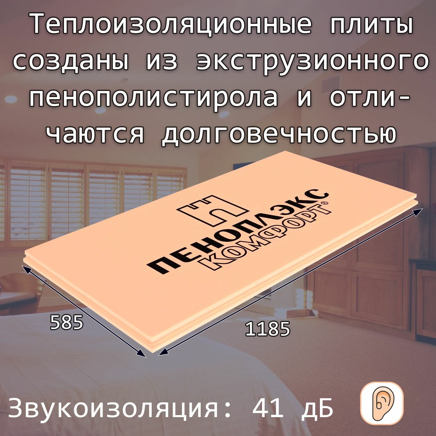 Пеноплэкс Комфорт XPS Г4 1185х585х20мм (шт.) / Пеноплэкс Комфорт экструдированный пенополистирол Г4 1185х585х20мм (шт.)