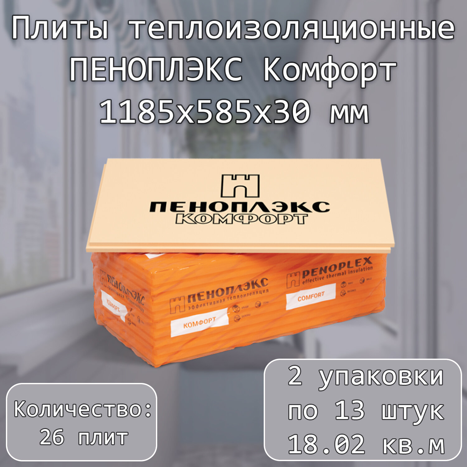 Пеноплэкс комфорт (13 листов, 118,5х58,5см, толщина 3см) универсальный утеплитель из экструдированного пенополистирол/листовая теплоизоляция для стен