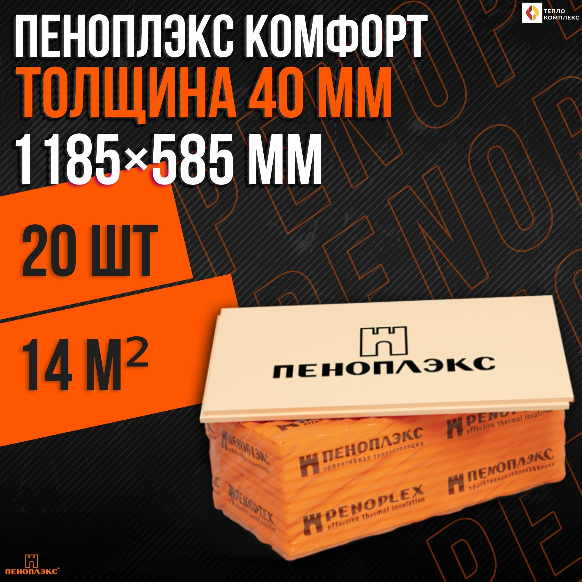 Пеноплекс Комфорт 1185х585х40мм XPS (9шт=6,24м2=0,25м3) / пеноплэкс Комфорт экструдированный пенополистирол 1185х585х40мм (упак. 9шт=6,24м2=0,25м3)