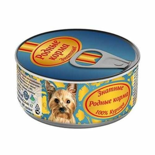 Родные Корма консервы для собак знатные, курица для собак 100 %, 100 г