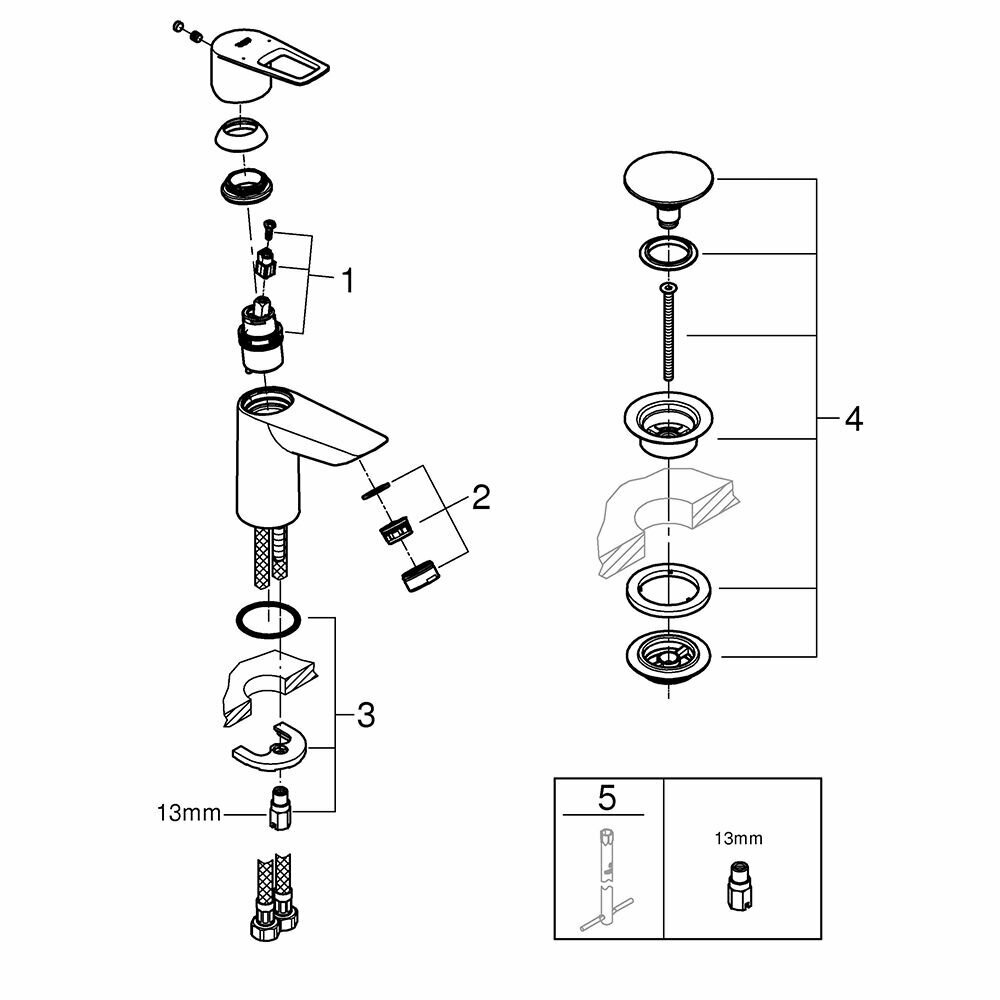 Смеситель для раковины GROHE Start Loop S с донным клапаном интересное: