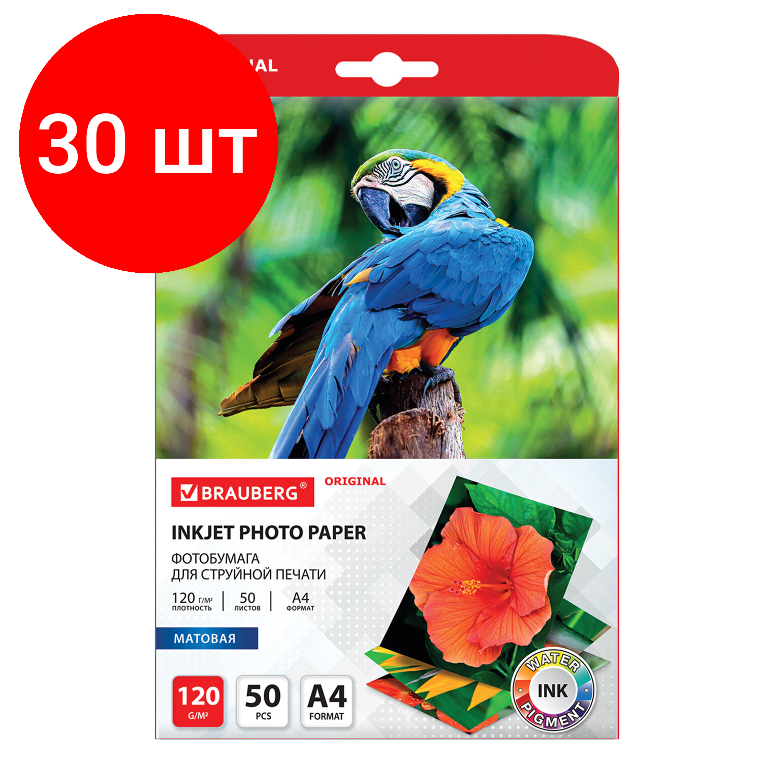 Комплект 30 шт, Фотобумага матовая, А4, 120 г/м2, односторонняя, 50 листов, BRAUBERG ORIGINAL, 363981 интересное: