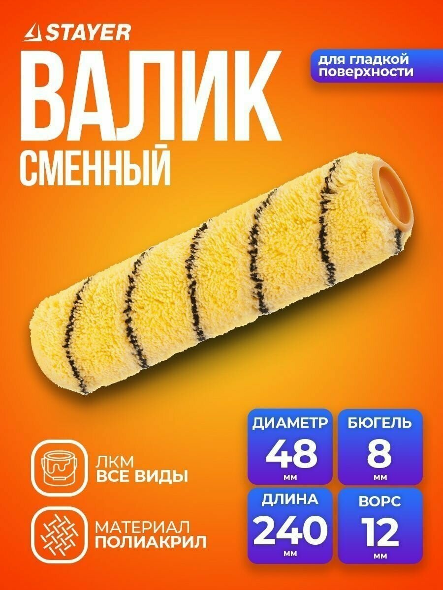STAYER DUALON, 48 х 240 мм, бюгель 8 мм, ворс 12 мм, полиакрил, все виды ЛКМ, малярный ролик, Professional (02182-24) интересное: