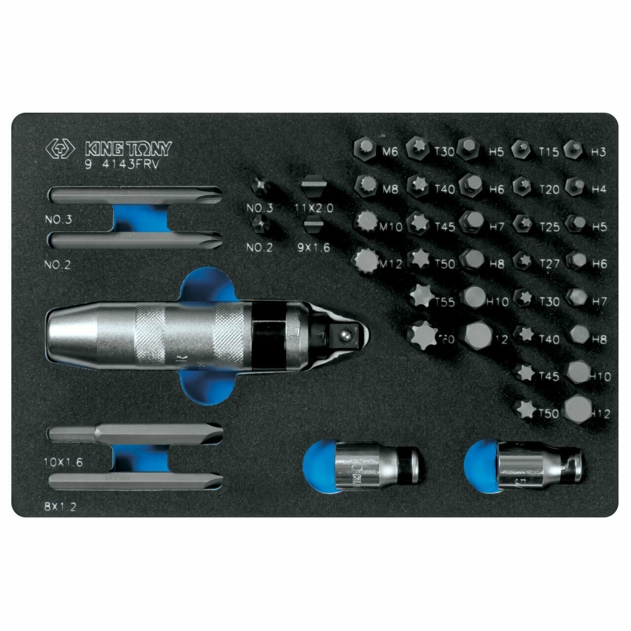 9-4143FRV KING TONY Набор торцевых насадок, бит и ударная отвертка, ложемент, 43 предмета