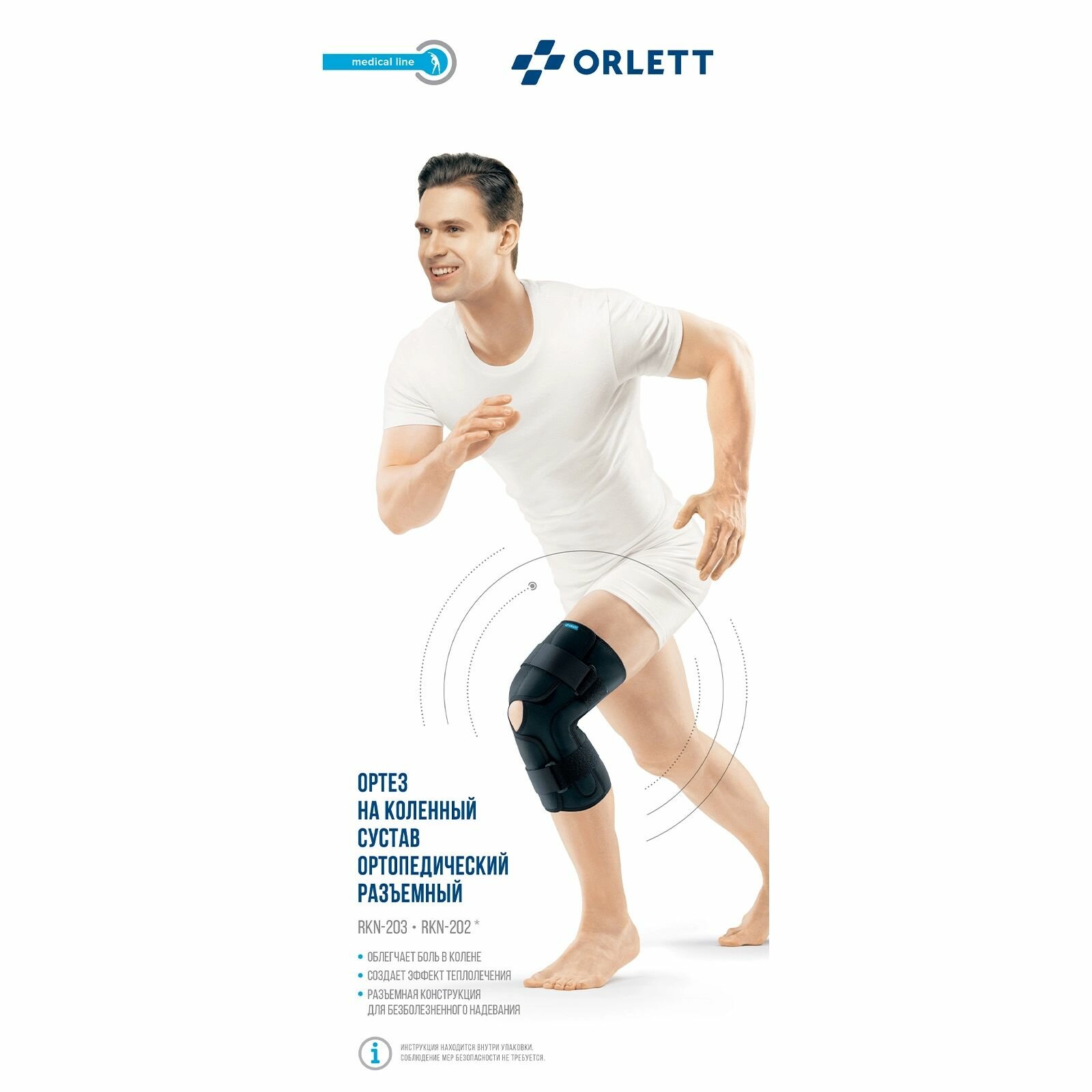Orlett Разъемный коленный ортез с полицентрическими шарнирами Orlett, RKN-203