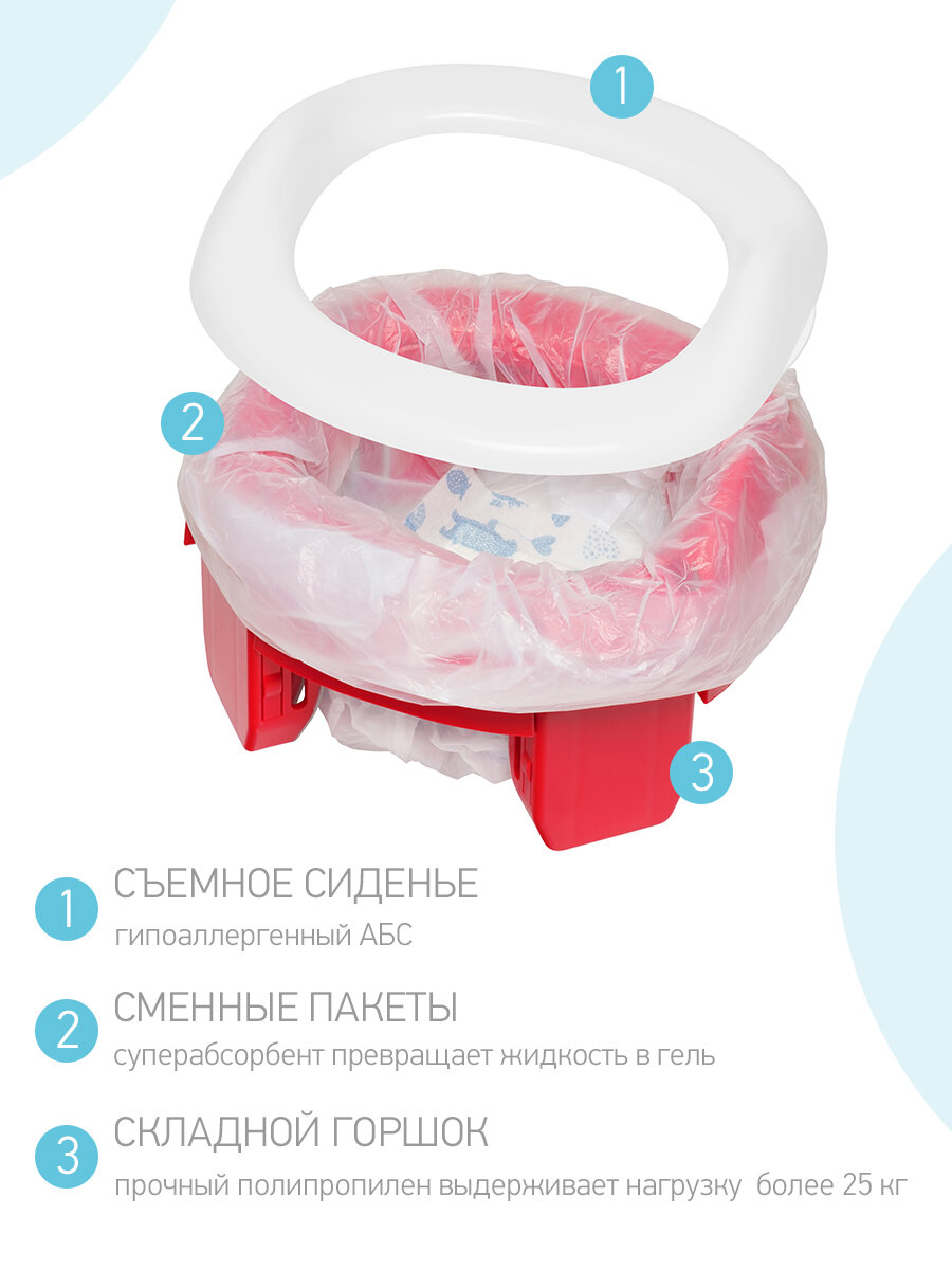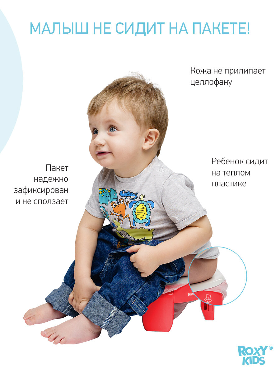 Горшок дорожный складной и насадка на унитаз HandyPotty от ROXY-KIDS с тремя пакетами, цвет розовый