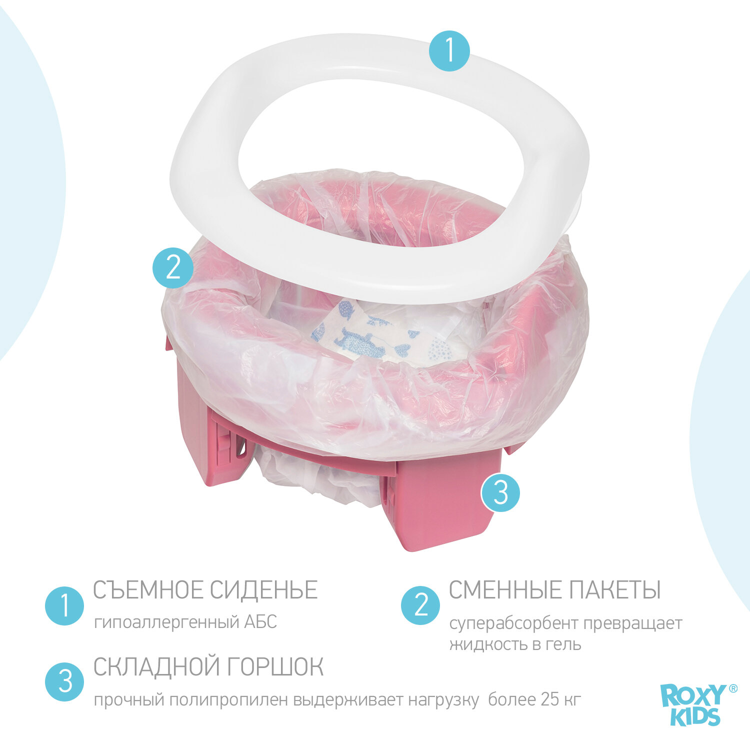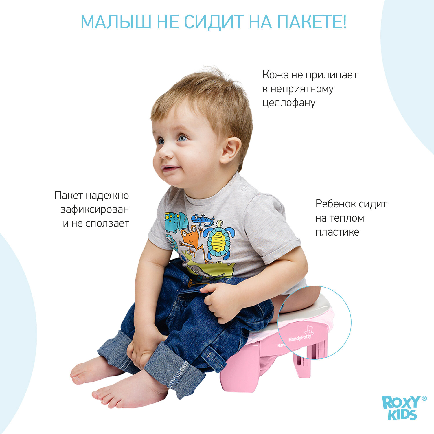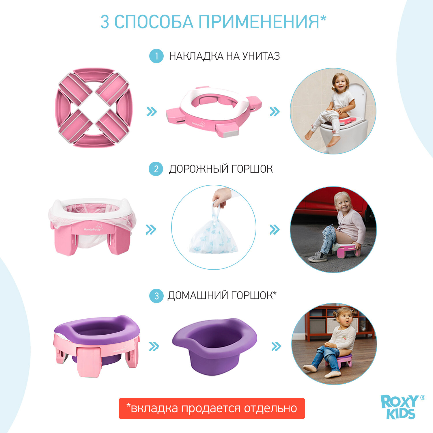 Горшок дорожный складной и насадка на унитаз HandyPotty от ROXY-KIDS с тремя пакетами, цвет розовый