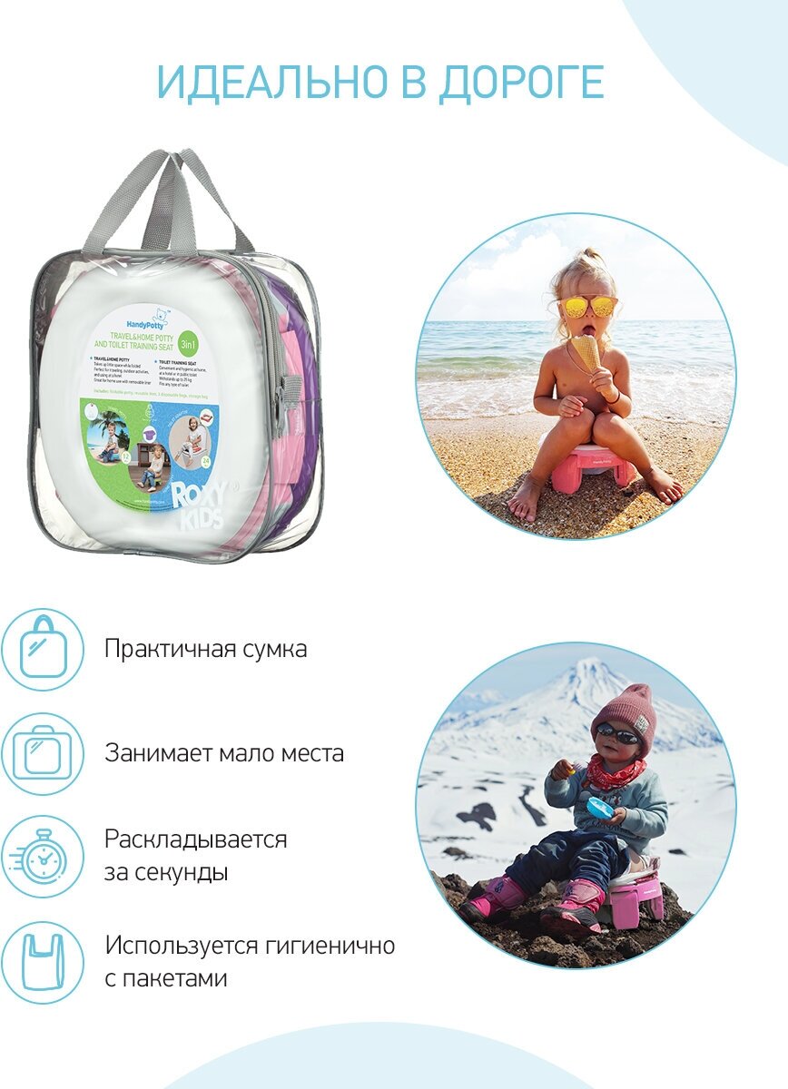 Горшок детский складной дорожный 2в1 для малышей HandyPotty ROXY-KIDS