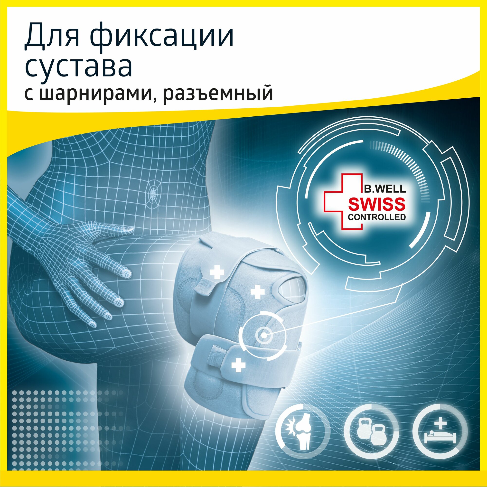 Бандаж B.well rehab W-3320 на колено, с шарнирами и металлическими ребрами жесткости, сильной фиксации, размер S