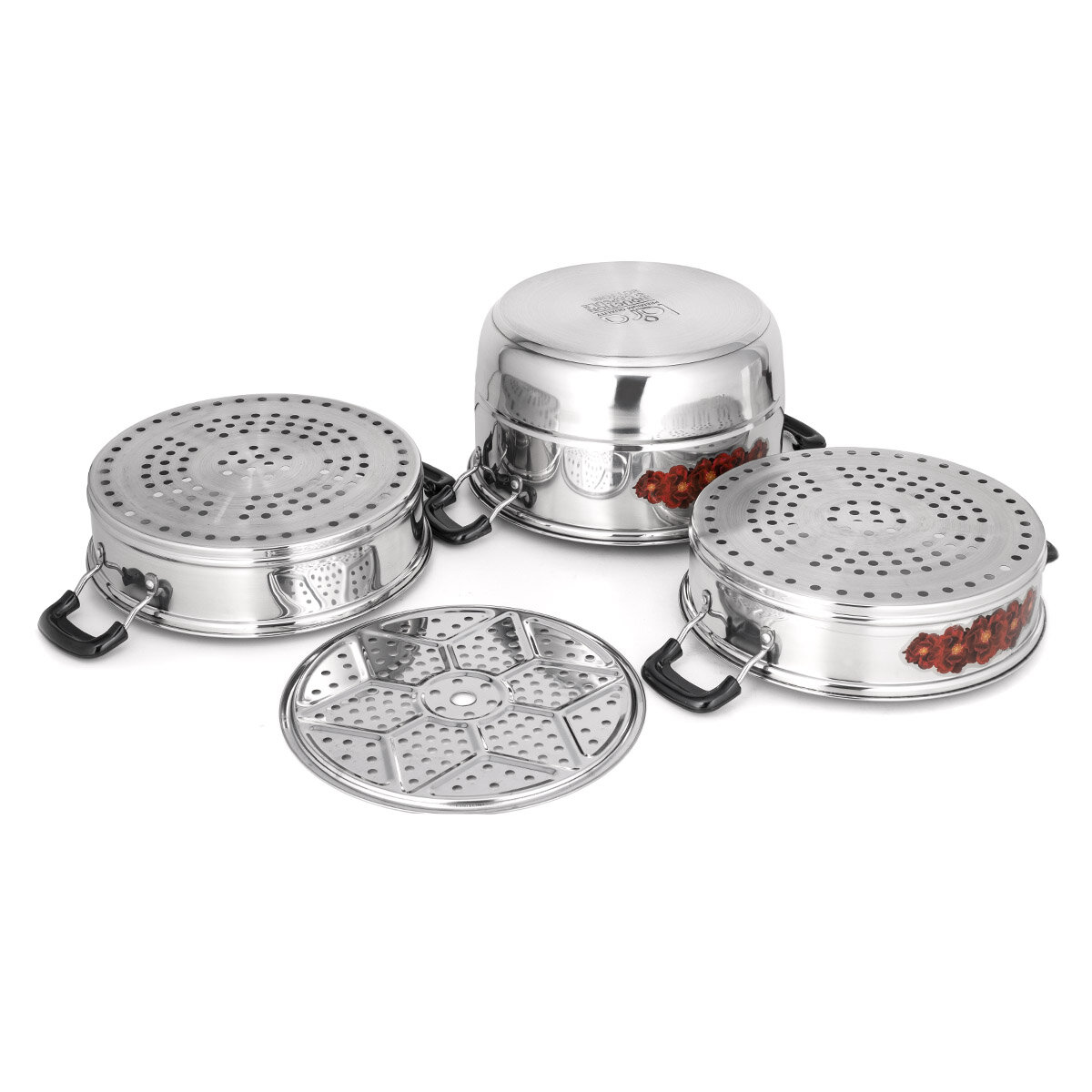 Мантоварка-пароварка LARA нерж 30x32см, 13л, 3 секции + крышка с окном, сталь 0,5 мм LR03-41