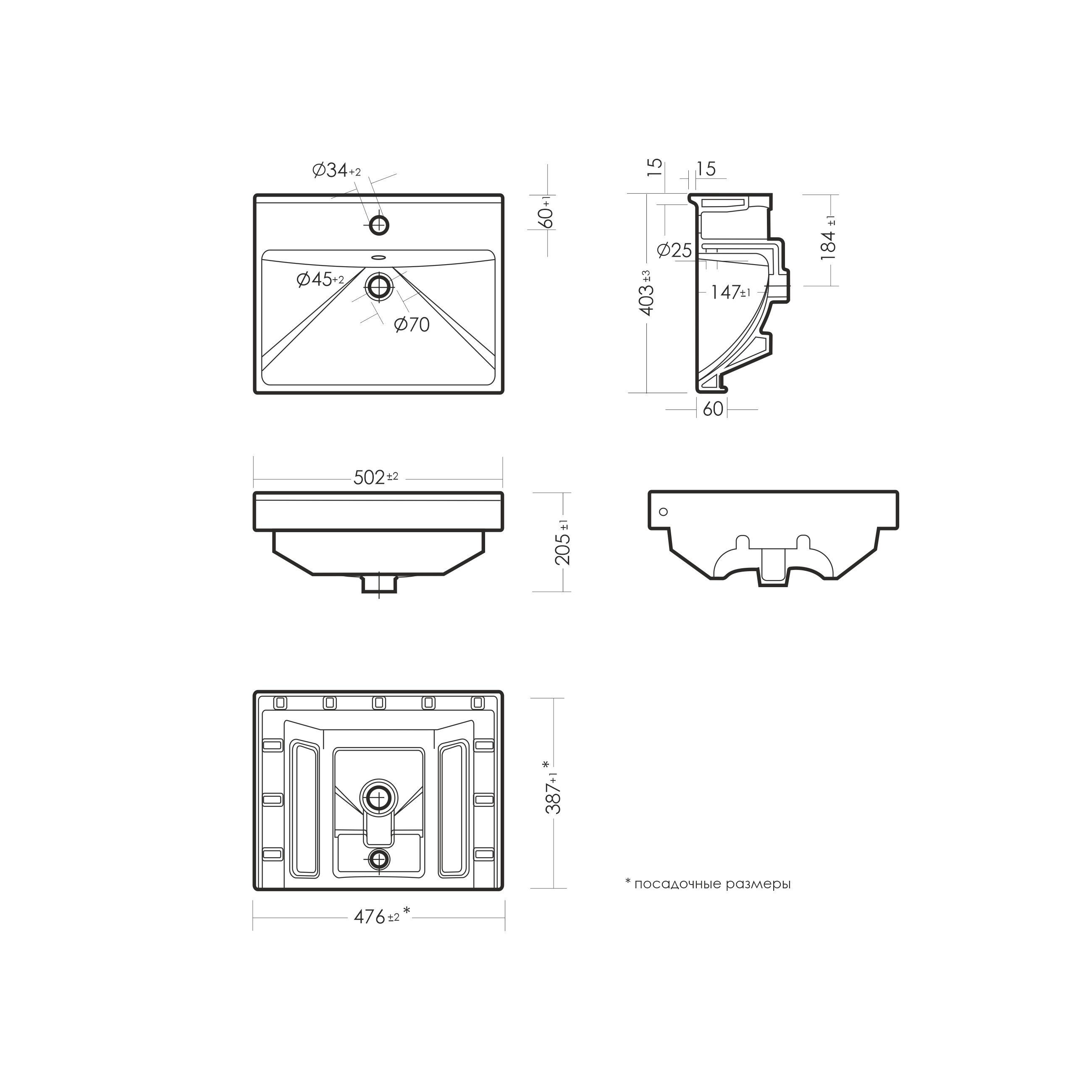 Санита Люкс Фест 60 умывальник 605x403х219мм / SANITA Luxe Fest 60 умывальник мебельный 605x403х219мм