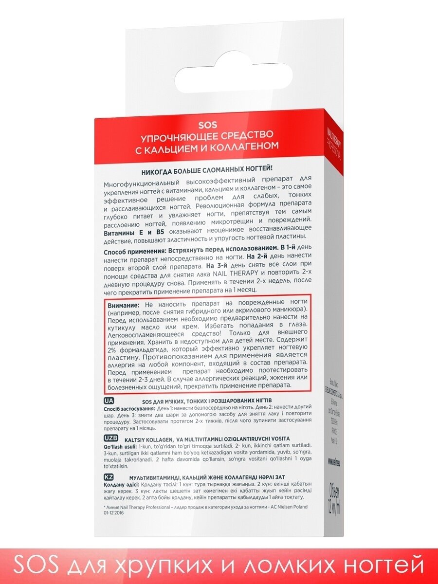 Eveline Nail Therapy Professional SOS Мультивитаминный препарат д/мягких,тонких ногтей, 12 мл 1 шт
