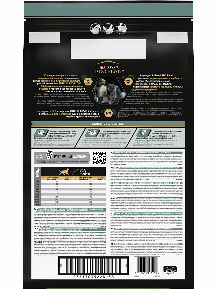 Сухой корм PRO PLAN® для взрослых собак крупных пород с мощным телосложением с чувствительным пищеварением, с высоким содержанием ягненка, SENSITIVE DIGESTION, 14 кг