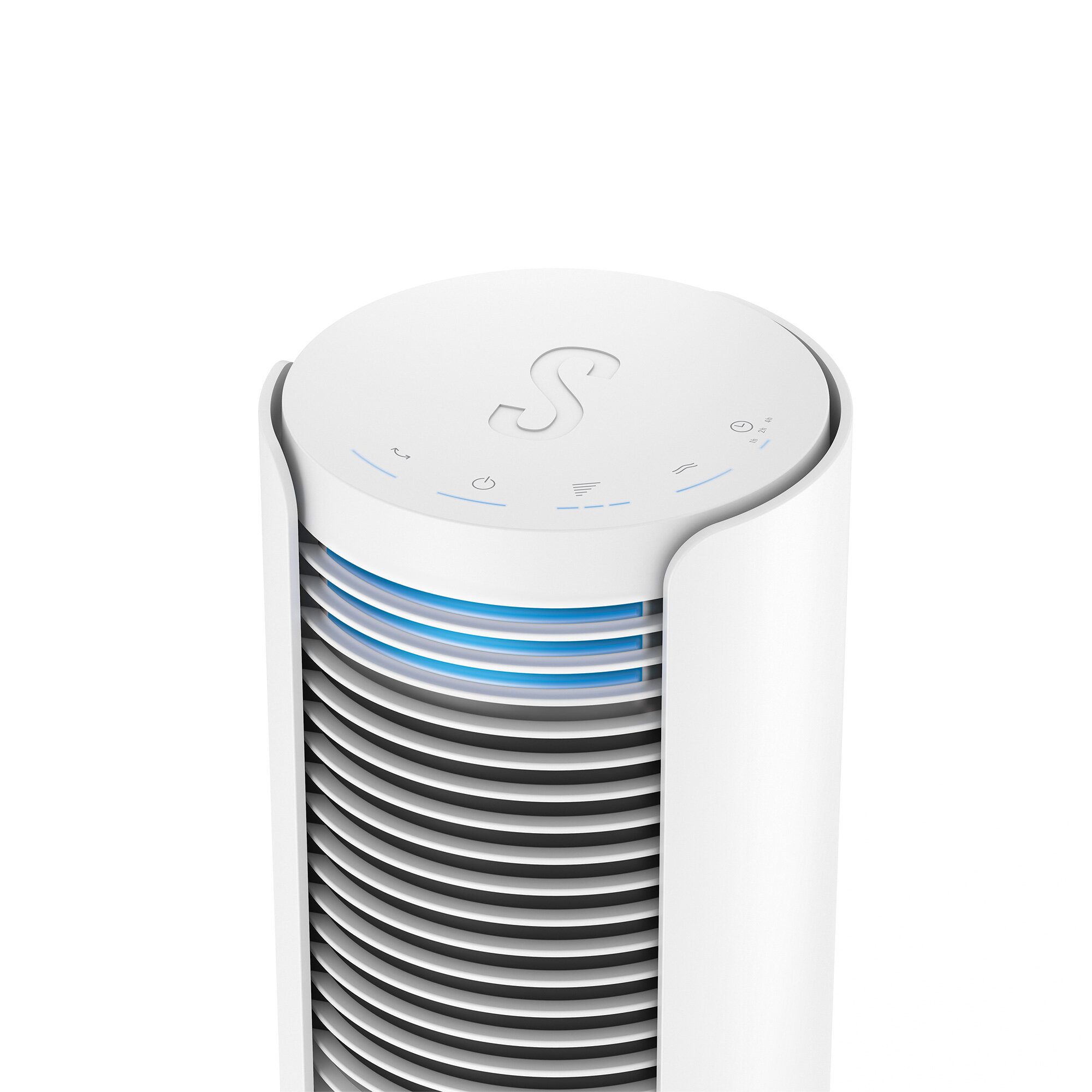 Вентилятор напольный колонный с пультом управления ДУ и таймером для дома и офиса (домашний, офисный) сенсорный, бесшумный, мощный Stadler Form Peter white P-012 белый пластик, металл, вертикальная колонна, охлаждение Морской бриз