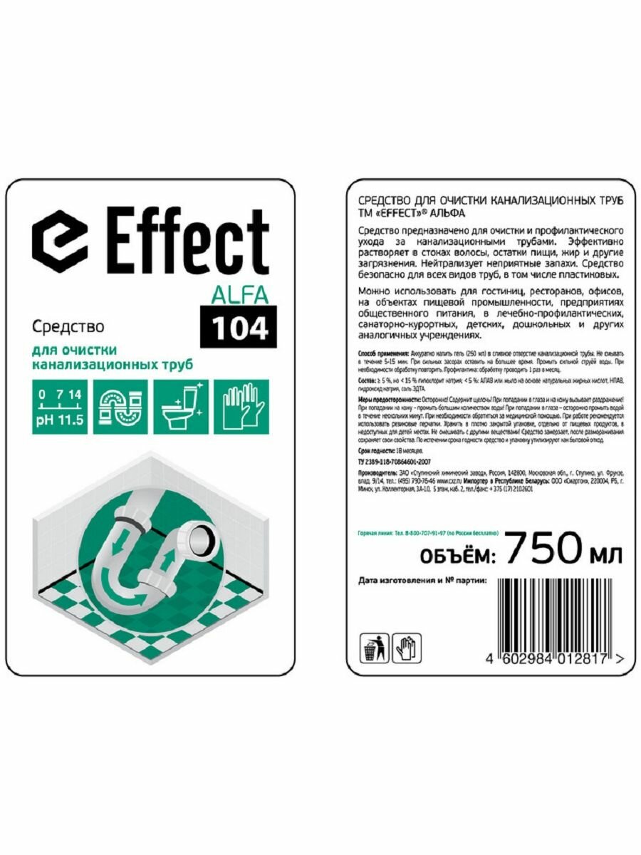 Промышленная химия Effect Alfa 104, 750мл, для очистки канализационных труб (13115)